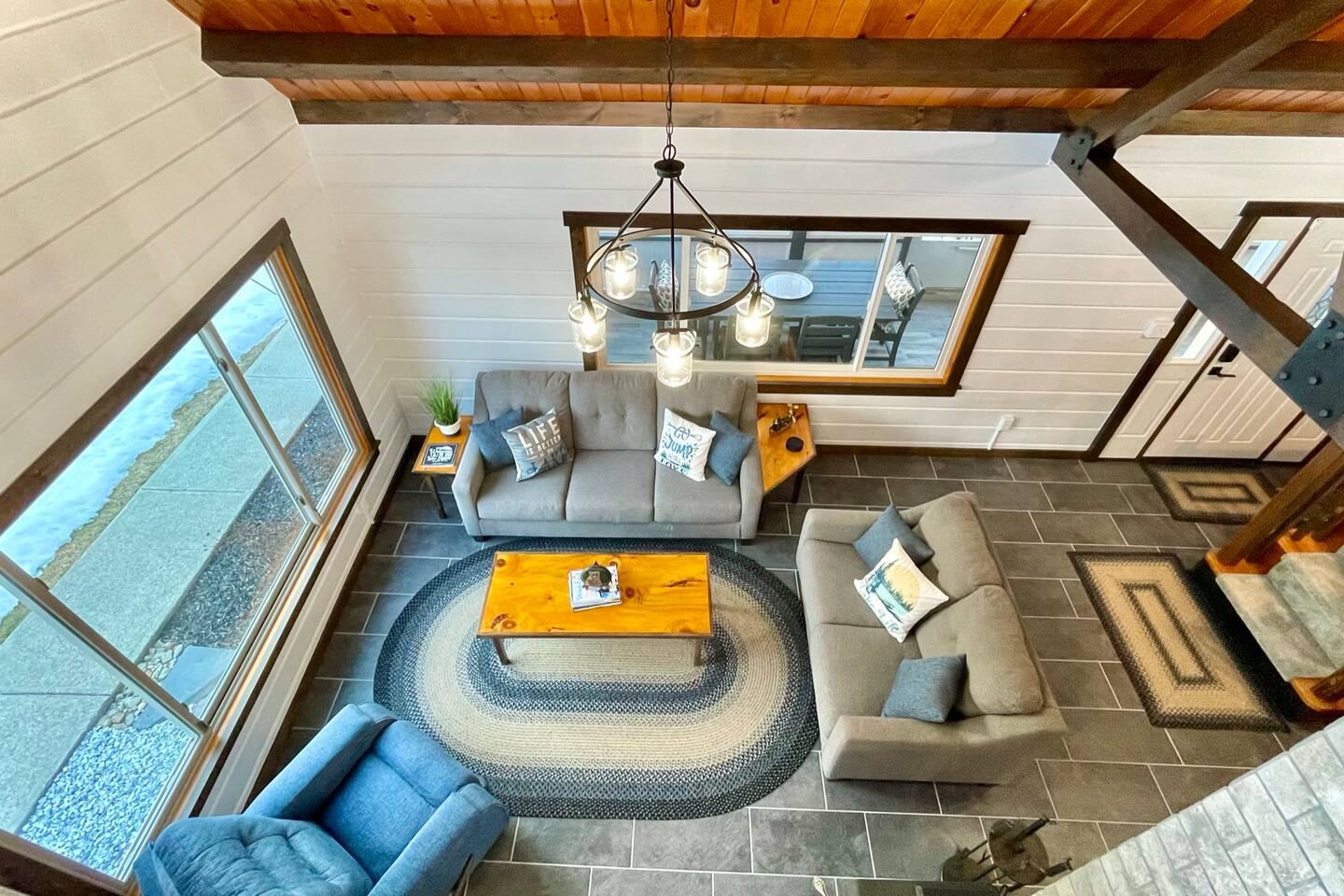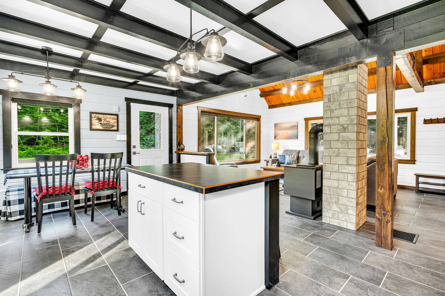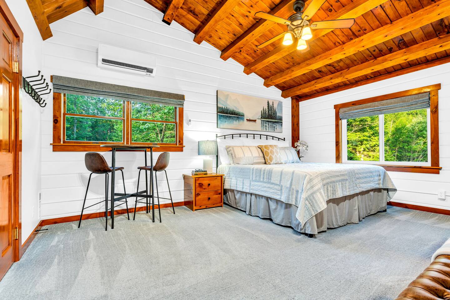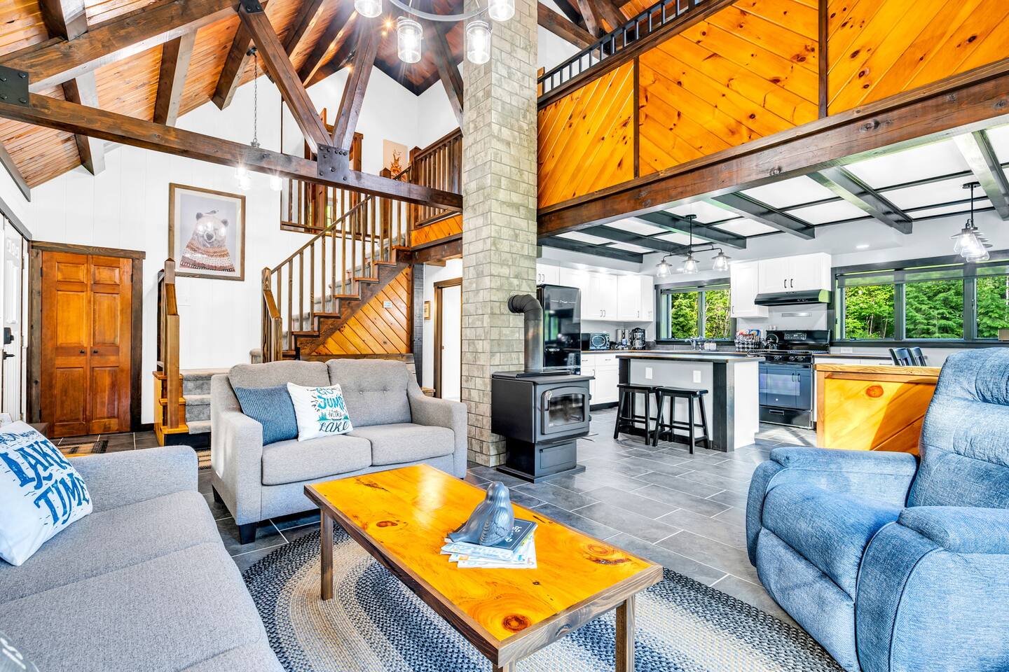 We created our dream vacation home and have decided to open the doors for others to enjoy. We hope you will come stay again and again and build those special memories that can only be found around a Maine lake. This is our happy place, and we hope to be able to keep sharing it with good folks. The property is comfortable for up to 6 people. We respect our guests and hope to share our cabin for years to come. For the safety of our guests and due to limitations of the entire property, MAXIMUM occupancy is limited to 6 people AT ALL TIMES and is strictly enforced. No gatherings or additional visitors on the 14-acre property at any time. We hope you understand. While the cabin is fantastic for making memories with your small group of 6 or less, there are public establishments and parks nearby where you can join with family and friends in excess of 6 for a meal, picnic, photos, and good times. _____________________ Please read the following disclosure: In order to secure your reservation, a signed rental agreement and $500 refundable deposit is required. Booking guest will be required to sign a rental agreement and submit a copy of government-issued ID. Please message e-mail address upon booking so the rental agreement and a link to securely pay deposit may be sent. Booking may be canceled by host if guest fails to submit deposit and signed agreement upon booking. We appreciate your understanding. NO ADDITIONAL VISITORS ALLOWED ON THE ENTIRE 14-ACRE PROPERTY AT ANY TIME. MAX OCCUPANCY LIMITED TO 6 AT ALL TIMES. NO GATHERINGS/PICNICS/PHOTO SHOOTS, etc. Guest Reservation will be cancelled and access terminated IMMEDIATELY without refund if this rule is violated. Absolutely no gatherings or events are allowed anywhere on the property. If you are looking to host visitors, this is not the place. If you have a change in guest count from the time of booking, you must update the guest count on the booking to reflect all adults and children, ages 0 and up. Unauthorized guests are illegally trespassing and will result in additional fees as well as immediate cancelation and termination of remaining booking term without refund. _______________________ StayBirdy's LOST LOON cabin has been totally and very thoughtfully renovated to include A/C and whole-home GENERATOR, appliances, flooring, furniture and furnishings, TVs, games, every creature comfort you could hope for, all while escaping to your own private retreat. Aluminum dock with built-in seating and kayaks for you to enjoy from the property. Also along the lake frontage is a fire pit with cozy Adirondack seating and a swing hanging from the trees. AMAZING sunsets and an abundance of wildlife await! While you may never want to leave, you have an plethora of options for additional activities and dining nearby. Outside of the quaint town of Readfield, you have Maine's state capital of Augusta only 20 minutes away. The Portland airport is just over an hour away from Readfield. The coastal town of Wiscasset is within an hour's drive, where you can continue down Route 1 for additional coastal stops and an active summer drive. _______________________ BED and BATH > Primary King Suite: located upstairs with private en-suite bathroom featuring walk-in shower and window for lots of light. 50" Roku TV where you can log in to your favorite streaming apps. Large dresser of drawers, luggage rack, hooks and hanging area (no closet) provide space and storage. Two large windows with shades offer wonderful natural lighting and views to the lake. Tall table for two with views to the lake to enjoy an evening beverage of choice or a quiet place to yourself to work on your laptop. > Downstairs King Bedroom: We call it the "Blue Room". Enjoy picturesque views of the lake from a comfy new mattress. You have a corner desk for working, a closet with dresser, and a corner seating area. > Downstairs Queen Bedroom: Also known as the "Red Room". This room is located adjacent to the Blue Room and offers whimsical woodland animal fun with forest views, dresser and closet for ample storage. > In addition to the en-suite bathroom upstairs, the downstairs guests share a full bathroom with tub and window for bright lighting. All bath linens, soap shampoo, conditioner are provided. > The Upstairs Media Loft: A cozy space overlooking the downstairs living with lots of light from the windows with woodland views. You will find many family friendly games for memorable FAMILY GAME NIGHT. Available dark shades encourage MOVIE NIGHT on the 65" Roku TV where you can log in to your favorite streaming services. KITCHEN Fun fully-renovated retro diner inspired space! Light and bright! You can even enjoy doing the dishes with the big window looking out to the woods and nature, Fully stocked with major and minor appliances, dishes, cookware. Traditional drip coffee maker and grounds are available. Breakfast area dining includes bright window views, plus additional seating in the adjacent enclosed all-season porch. LIVING Vaulted ceilings and cozy space with natural light and views. The living area is open and bright with comfortable seating. Adjoins to kitchen area. PATIO The open patio offers built-in seating and a nearby Weber Premier Premium charcoal grill station for those traditional main red snappah" BBQs. PORCH When you arrive, you will enter through the completely renovated all-season porch. Whether you would like to lounge at the conversation corner with views to the lake, or play foosball at the other end, the porch offers a huge space to have fun and take in the outdoors in comfort. You will find other engaging games for all ages to play, or you can simply sit and relax. DOCK 35' aluminum dock and kayak racks with 2 sit-on-top kayaks. Nearby company offers kayak rentals if additional kayaks are needed. The dock is a fabulous place to enjoy the colorful sunsets or have a morning cup of coffee. Either way, you will likely here the amazing sounds of the loons. We are very fortunate to have