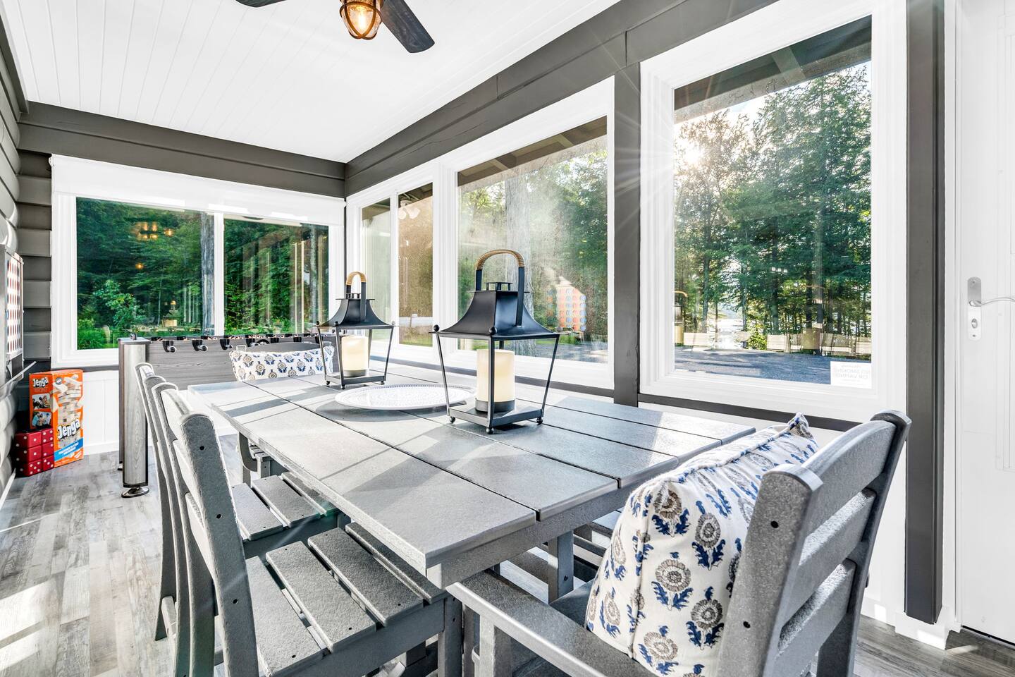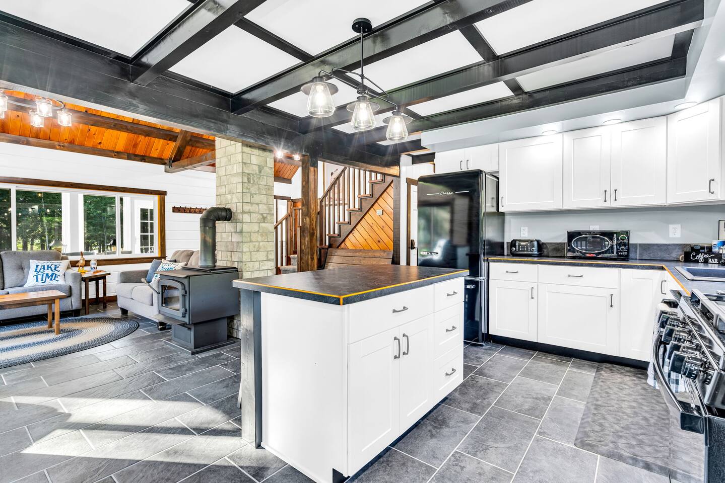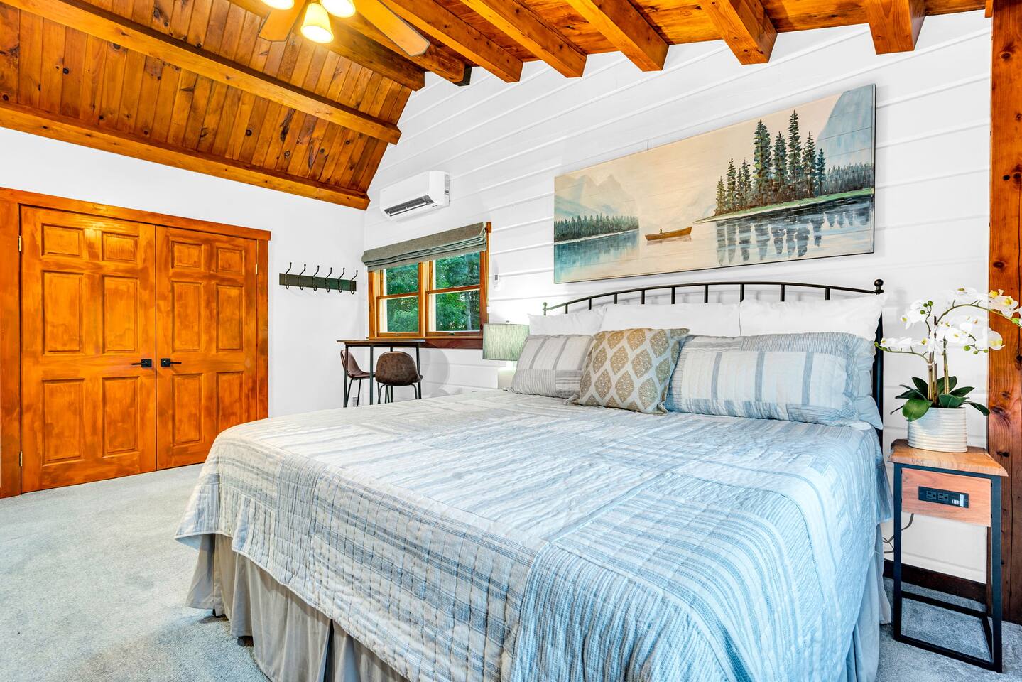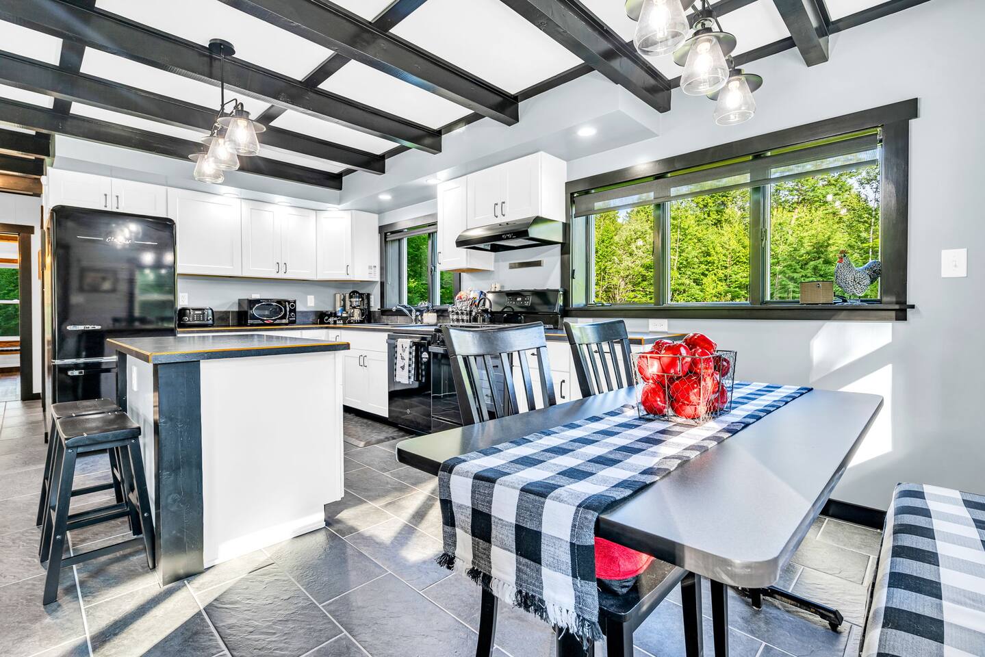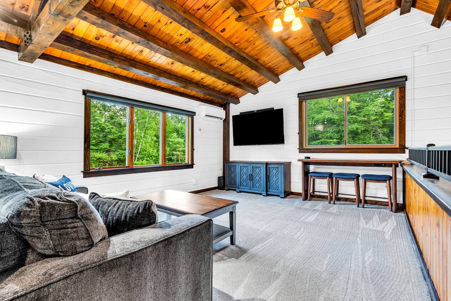 We created our dream vacation home and have decided to open the doors for others to enjoy. We hope you will come stay again and again and build those special memories that can only be found around a Maine lake. This is our happy place, and we hope to be able to keep sharing it with good folks. The property is comfortable for up to 6 people. We respect our guests and hope to share our cabin for years to come. For the safety of our guests and due to limitations of the entire property, MAXIMUM occupancy is limited to 6 people AT ALL TIMES and is strictly enforced. No gatherings or additional visitors on the 14-acre property at any time. We hope you understand. While the cabin is fantastic for making memories with your small group of 6 or less, there are public establishments and parks nearby where you can join with family and friends in excess of 6 for a meal, picnic, photos, and good times. _____________________ Please read the following disclosure: In order to secure your reservation, a signed rental agreement and $500 refundable deposit is required. Booking guest will be required to sign a rental agreement and submit a copy of government-issued ID. Please message e-mail address upon booking so the rental agreement and a link to securely pay deposit may be sent. Booking may be canceled by host if guest fails to submit deposit and signed agreement upon booking. We appreciate your understanding. NO ADDITIONAL VISITORS ALLOWED ON THE ENTIRE 14-ACRE PROPERTY AT ANY TIME. MAX OCCUPANCY LIMITED TO 6 AT ALL TIMES. NO GATHERINGS/PICNICS/PHOTO SHOOTS, etc. Guest Reservation will be cancelled and access terminated IMMEDIATELY without refund if this rule is violated. Absolutely no gatherings or events are allowed anywhere on the property. If you are looking to host visitors, this is not the place. If you have a change in guest count from the time of booking, you must update the guest count on the booking to reflect all adults and children, ages 0 and up. Unauthorized guests are illegally trespassing and will result in additional fees as well as immediate cancelation and termination of remaining booking term without refund. _______________________ StayBirdy's LOST LOON cabin has been totally and very thoughtfully renovated to include A/C and whole-home GENERATOR, appliances, flooring, furniture and furnishings, TVs, games, every creature comfort you could hope for, all while escaping to your own private retreat. Aluminum dock with built-in seating and kayaks for you to enjoy from the property. Also along the lake frontage is a fire pit with cozy Adirondack seating and a swing hanging from the trees. AMAZING sunsets and an abundance of wildlife await! While you may never want to leave, you have an plethora of options for additional activities and dining nearby. Outside of the quaint town of Readfield, you have Maine's state capital of Augusta only 20 minutes away. The Portland airport is just over an hour away from Readfield. The coastal town of Wiscasset is within an hour's drive, where you can continue down Route 1 for additional coastal stops and an active summer drive. _______________________ BED and BATH > Primary King Suite: located upstairs with private en-suite bathroom featuring walk-in shower and window for lots of light. 50" Roku TV where you can log in to your favorite streaming apps. Large dresser of drawers, luggage rack, hooks and hanging area (no closet) provide space and storage. Two large windows with shades offer wonderful natural lighting and views to the lake. Tall table for two with views to the lake to enjoy an evening beverage of choice or a quiet place to yourself to work on your laptop. > Downstairs King Bedroom: We call it the "Blue Room". Enjoy picturesque views of the lake from a comfy new mattress. You have a corner desk for working, a closet with dresser, and a corner seating area. > Downstairs Queen Bedroom: Also known as the "Red Room". This room is located adjacent to the Blue Room and offers whimsical woodland animal fun with forest views, dresser and closet for ample storage. > In addition to the en-suite bathroom upstairs, the downstairs guests share a full bathroom with tub and window for bright lighting. All bath linens, soap shampoo, conditioner are provided. > The Upstairs Media Loft: A cozy space overlooking the downstairs living with lots of light from the windows with woodland views. You will find many family friendly games for memorable FAMILY GAME NIGHT. Available dark shades encourage MOVIE NIGHT on the 65" Roku TV where you can log in to your favorite streaming services. KITCHEN Fun fully-renovated retro diner inspired space! Light and bright! You can even enjoy doing the dishes with the big window looking out to the woods and nature, Fully stocked with major and minor appliances, dishes, cookware. Traditional drip coffee maker and grounds are available. Breakfast area dining includes bright window views, plus additional seating in the adjacent enclosed all-season porch. LIVING Vaulted ceilings and cozy space with natural light and views. The living area is open and bright with comfortable seating. Adjoins to kitchen area. PATIO The open patio offers built-in seating and a nearby Weber Premier Premium charcoal grill station for those traditional main red snappah" BBQs. PORCH When you arrive, you will enter through the completely renovated all-season porch. Whether you would like to lounge at the conversation corner with views to the lake, or play foosball at the other end, the porch offers a huge space to have fun and take in the outdoors in comfort. You will find other engaging games for all ages to play, or you can simply sit and relax. DOCK 35' aluminum dock and kayak racks with 2 sit-on-top kayaks. Nearby company offers kayak rentals if additional kayaks are needed. The dock is a fabulous place to enjoy the colorful sunsets or have a morning cup of coffee. Either way, you will likely here the amazing sounds of the loons. We are very fortunate to have